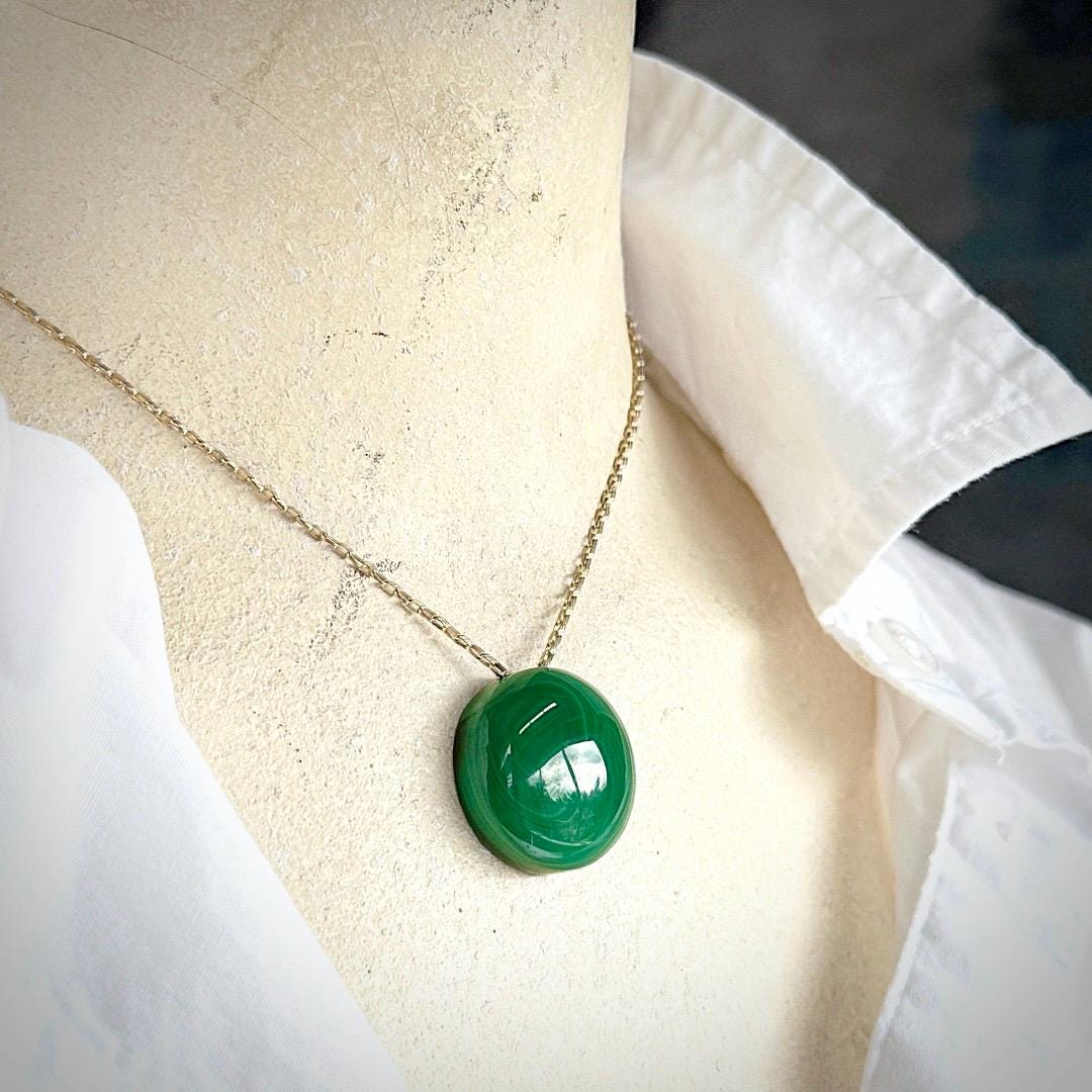 Care Note: Malachite is a sensitive stone. Please avoid heat, ultrasonic cleaners, and exposure to acids or chemicals. Gently clean only with a soft, damp cloth and store with care to preserve its polish and integrity.