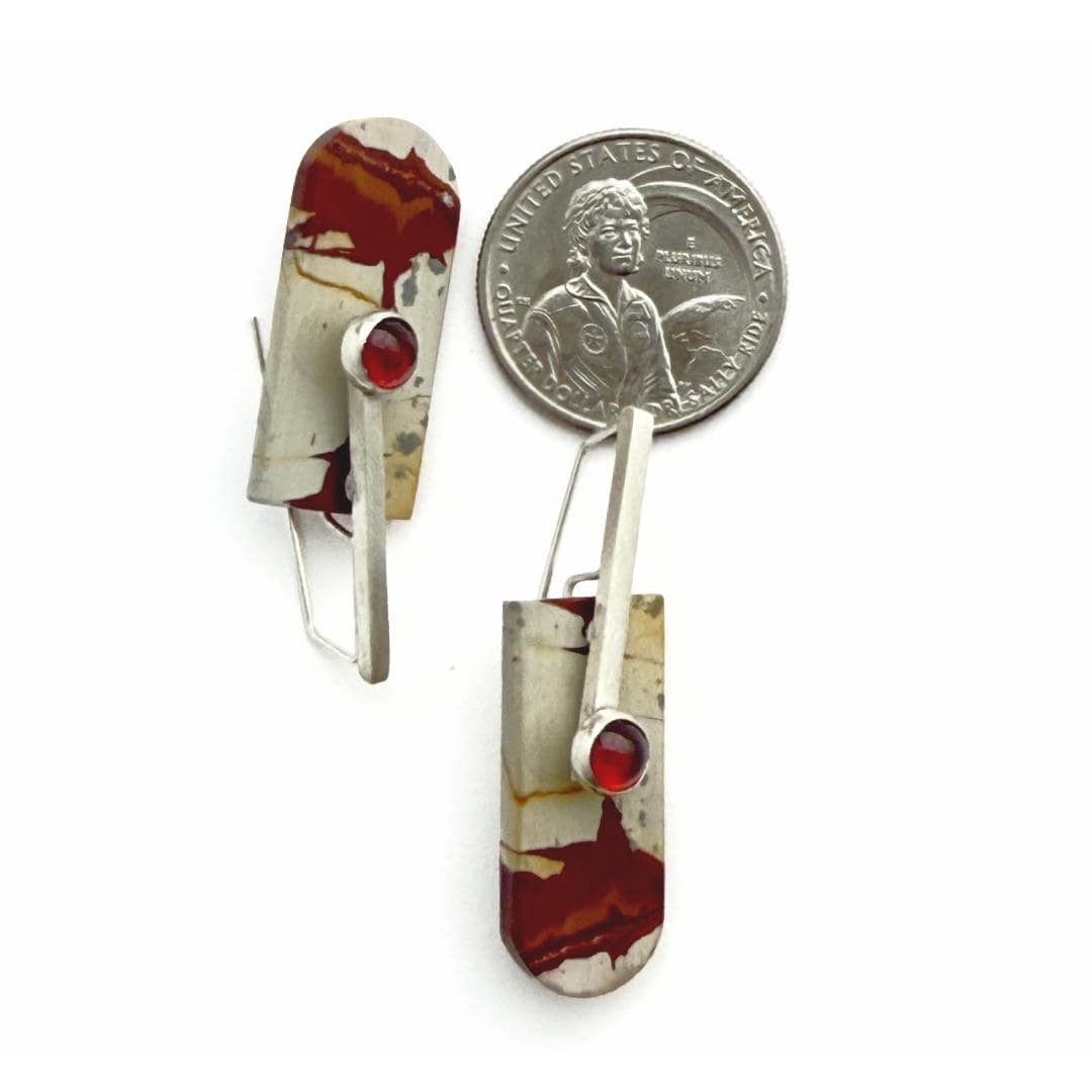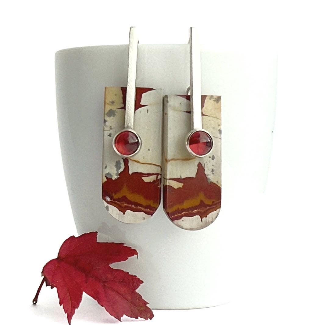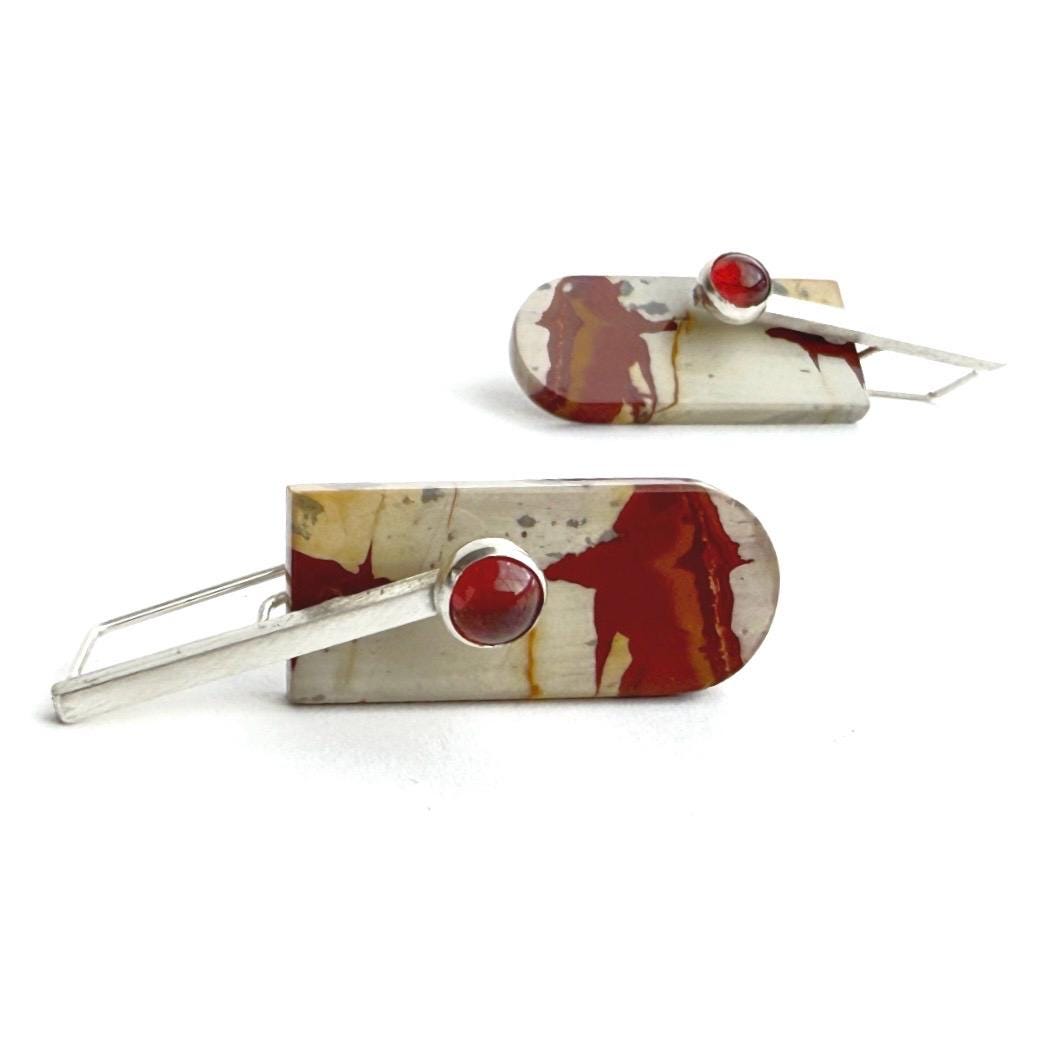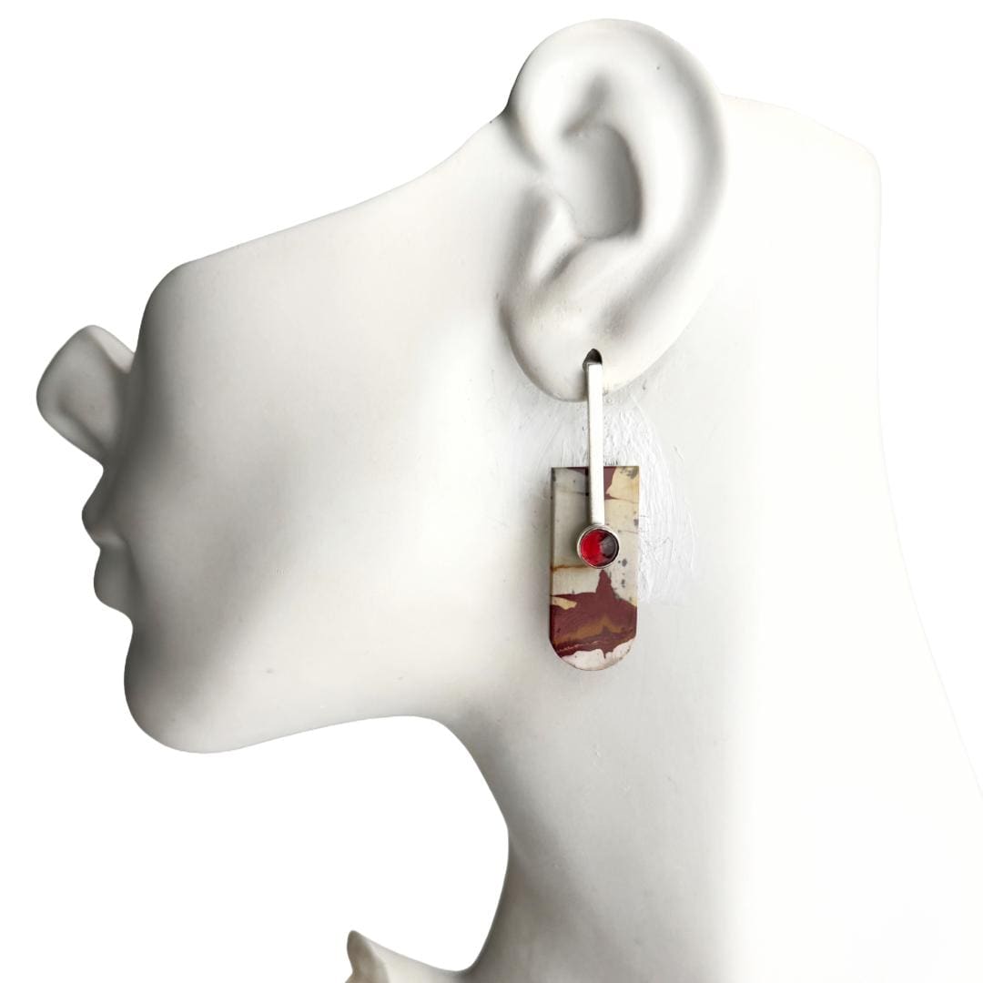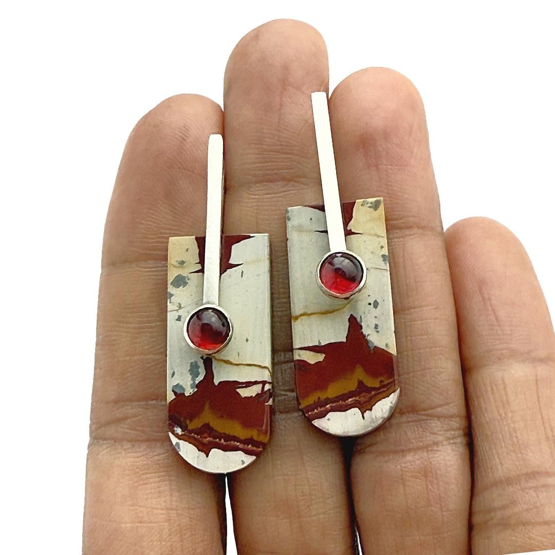 Thoughtful Pricing. Each pair is individually handcrafted from hand-selected Jasper and Garnet, chosen for their color harmony and clarity. The sterling silver ear wires are shaped and finished by hand, giving a modern lift to the organic stones. Pricing reflects the uniqueness of the materials, the craftsmanship behind each piece, and the intention to offer fine artisan jewelry at an accessible value.